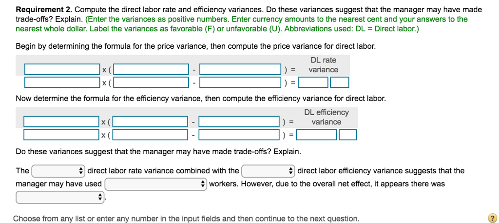Solved: Calculate The Direct Labor Rate Variance. Indicate ... from d2vlcm61l7u1fs.cloudfront.net The standard wage rate is $7.80 per hour. The following example will help you to understand further. See full list on accountingformanagement.org How to calculate direct labor rate variance: Because such workers are usually paid low wages. Jun 22, 2021 · labor yield variance can be calculated using the following formula: What is the total direct labor variance? Because highly experienced workers are paid high wages.